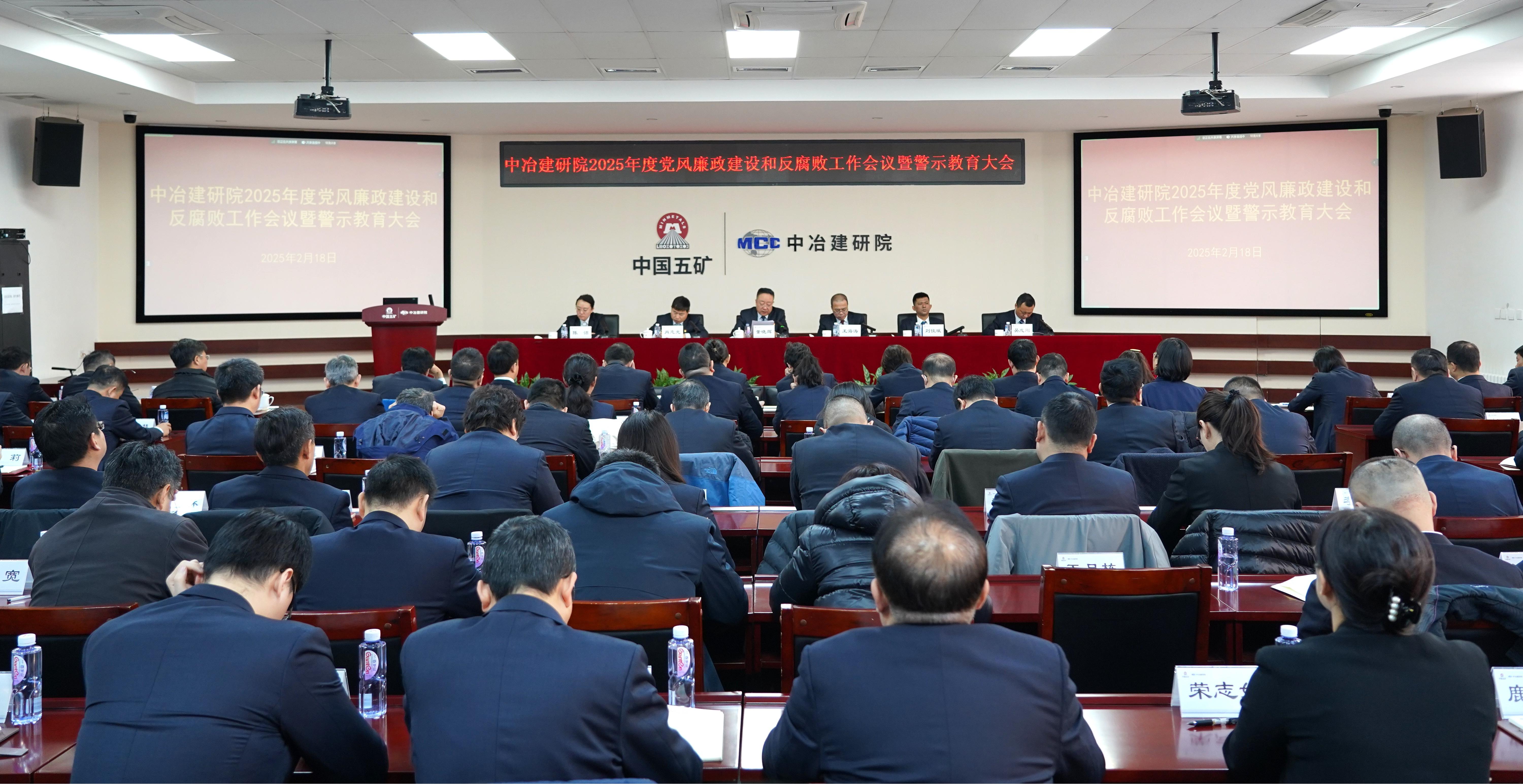 2月18日上午,總院召開2025年度黨風廉政建設和反腐敗工作會議暨警示教育大會,深入學習貫徹習近平新時代中國特色社會主義思想,黨的二十大、二十屆三中全會和二十屆中央紀委三次、四次全會精神,認真落實中國五礦、中國中冶黨風廉政建設和反腐敗工作會議要求,總結2024年工作,部署2025年重點任務,開展警示教育。黨委副書記、總經理董曉輝出席會議并講話。黨委副書記王海濤主持會議并傳達中國五礦和中國中冶黨風廉政建設和反腐敗工作會議精神。黨委委員、紀委書記劉佳斌作紀檢工作報告、通報典型案例。